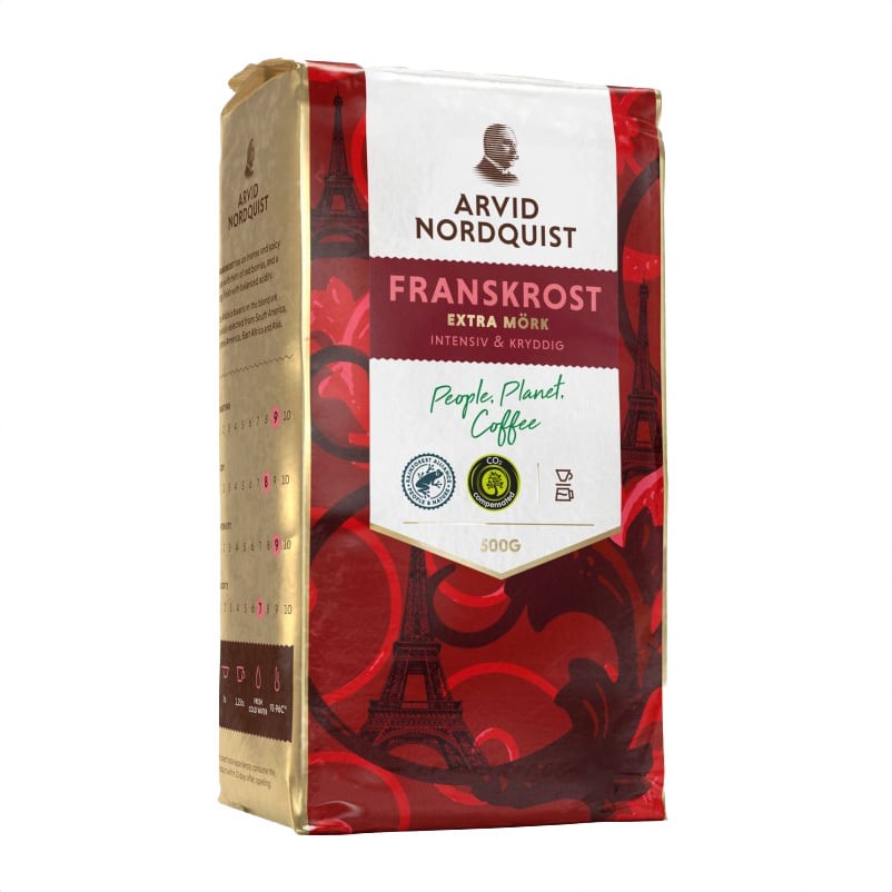 スウェーデン王室認定のコーヒーメーカー ARVID NORDQUIST(アールヴィッド・ノードクイスト)こだわりのエクストラ深煎りコーヒー FRANSKROST(フランスクロスト)。