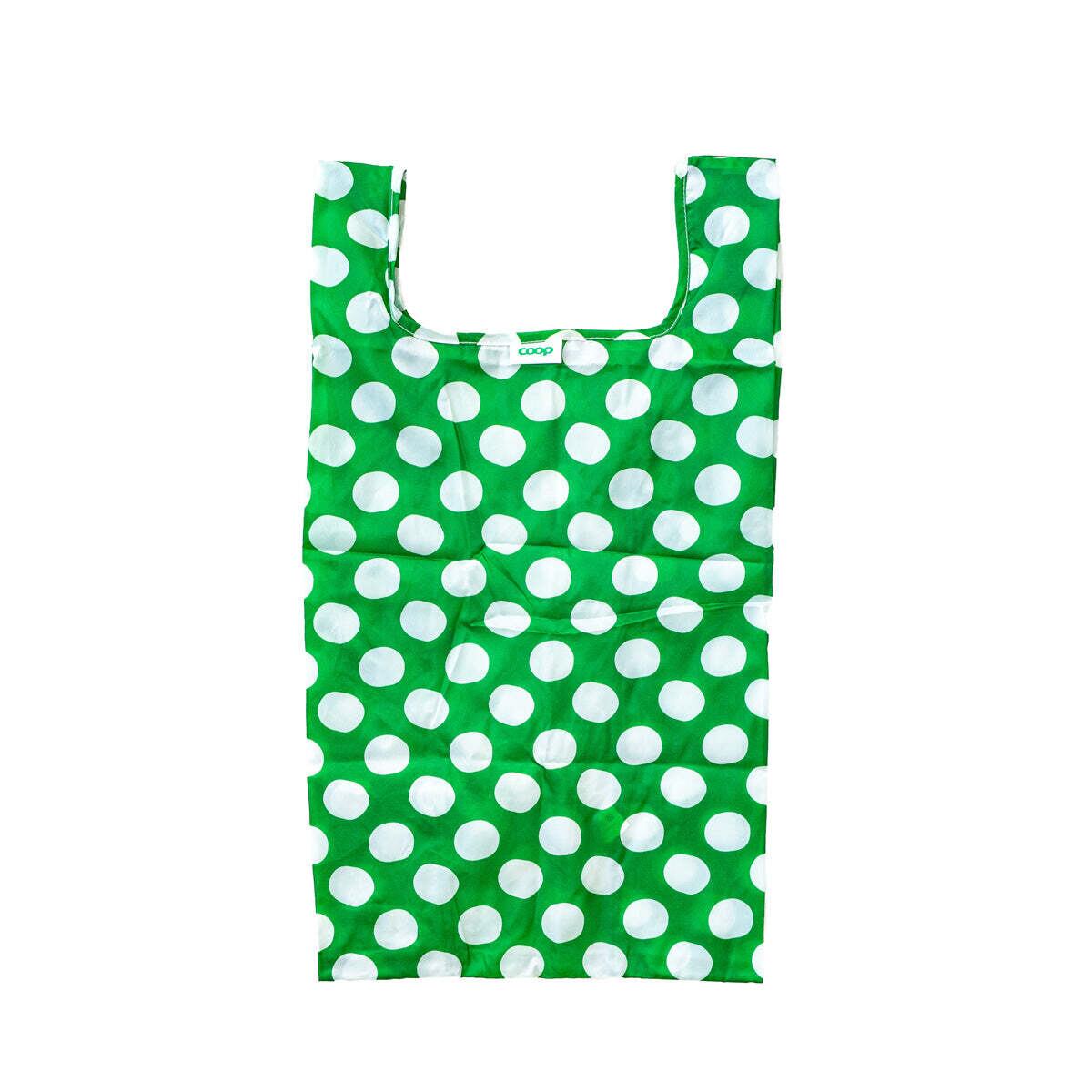 COOP SVERIGE のキュートなグリーン×ホワイトの水玉柄がかわいい Lサイズのエコバッグ。